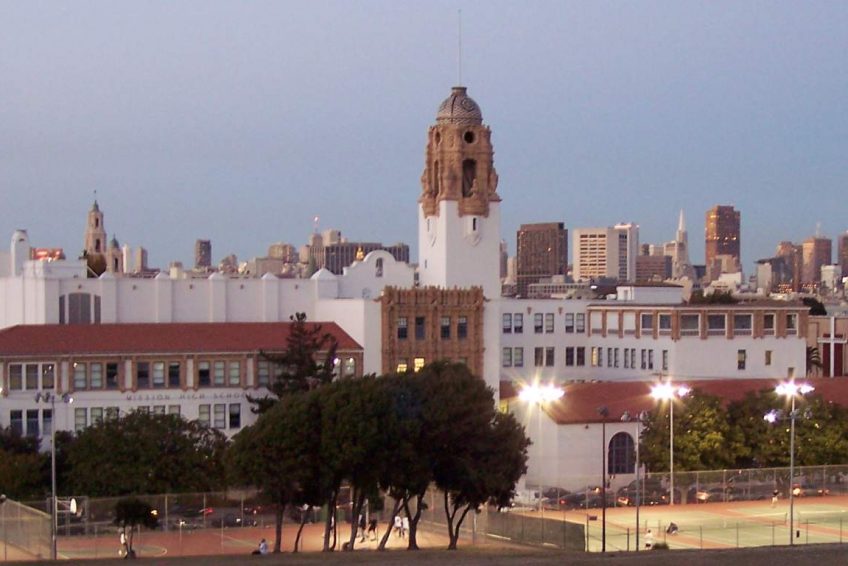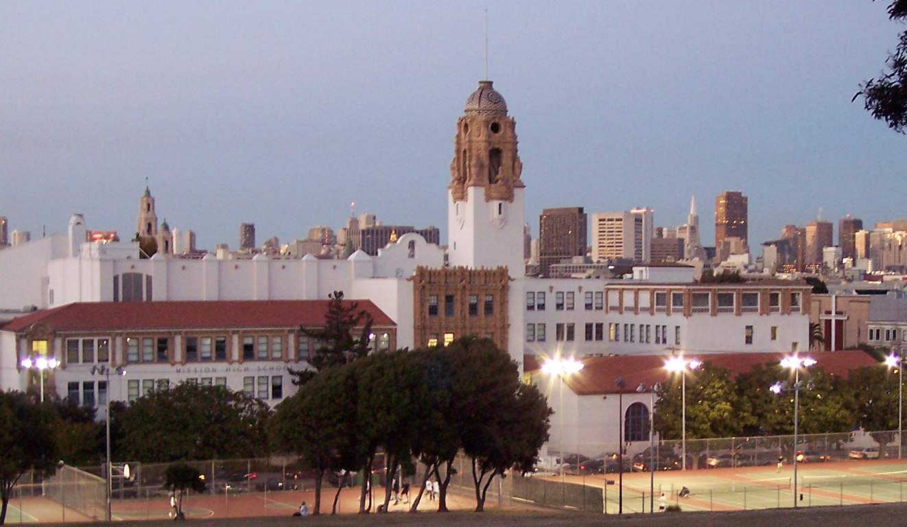 Mission高中是一个公立高校,教授9-12年级的学生。这座学校离多罗丽教堂(Mission Dolores)很久,名字也是由教堂名称中的Mission而得。学校之内有一个很大的剧院,两层一共有1750个木制折凳,容量很大。