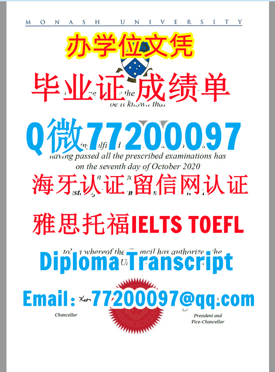 Monash文凭证书办理莫纳什大学文凭成绩单Q/微:77200097有Monash学位证书精仿Monash毕业证书能办Monash成绩单制作莫纳什大学文凭证书offerMonash University Diploma Degree Transcript