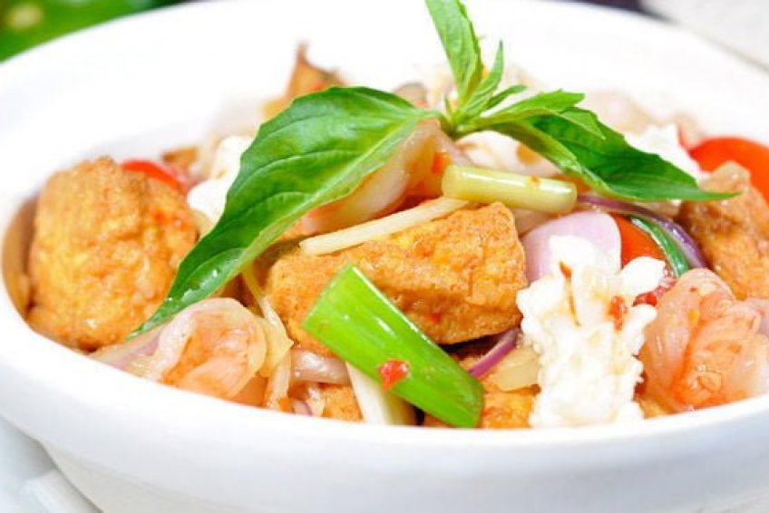 | Napoleon truffled potato chips & blue hawaiian prawn salad. | |||