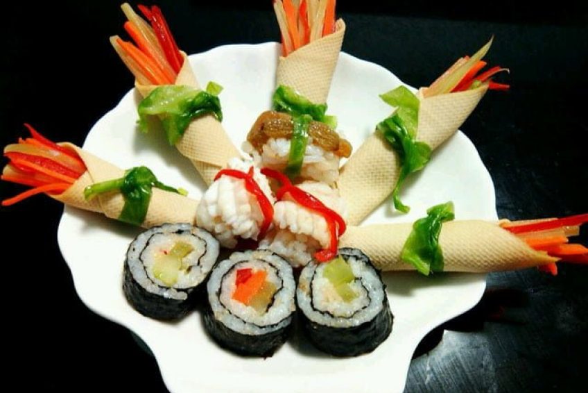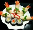 | Squid Ink Capellini with oven roasted tomato-sea urchin sauce, (four plate of seafood selections). | |||