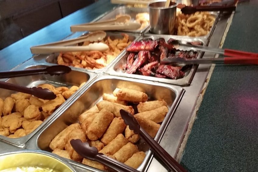 “They have a section under a lil awning that reads “carving station”, that has a variety of meats and sushi.” in 3 reviews