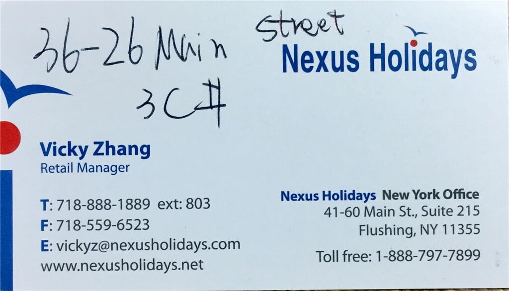 Nexus Holidays New York Office 41-60 Main St., Suite 215 Flushing, NY 11355