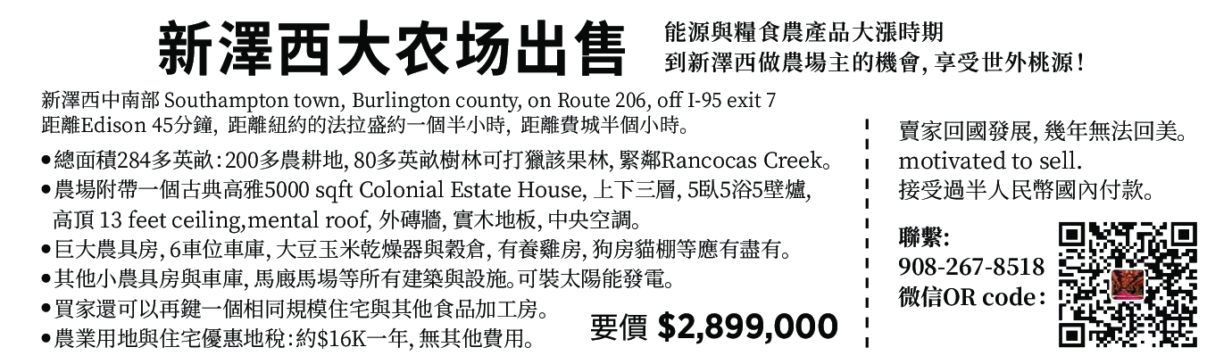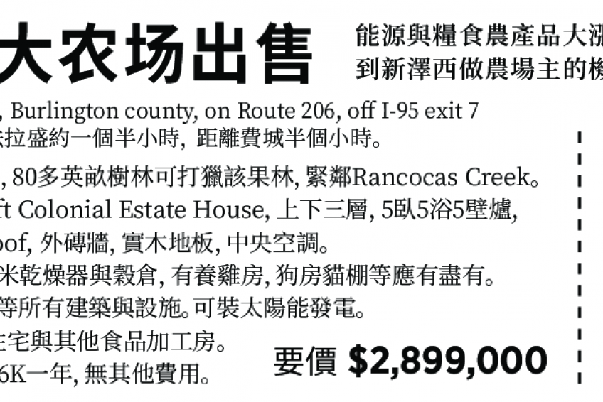 能源與糧食農產品大漲時期,到新澤西做農場主的機會,享受世外桃源