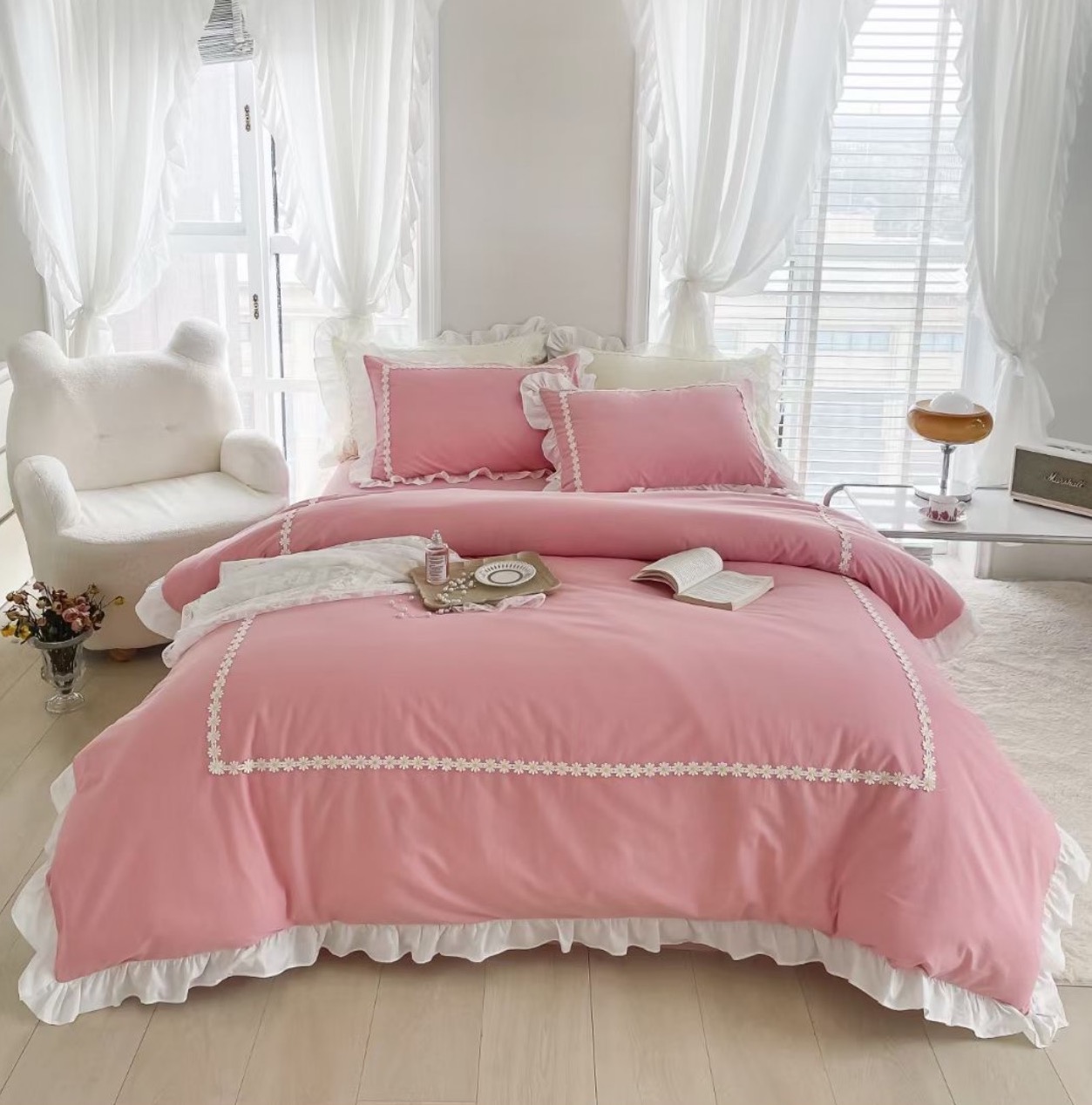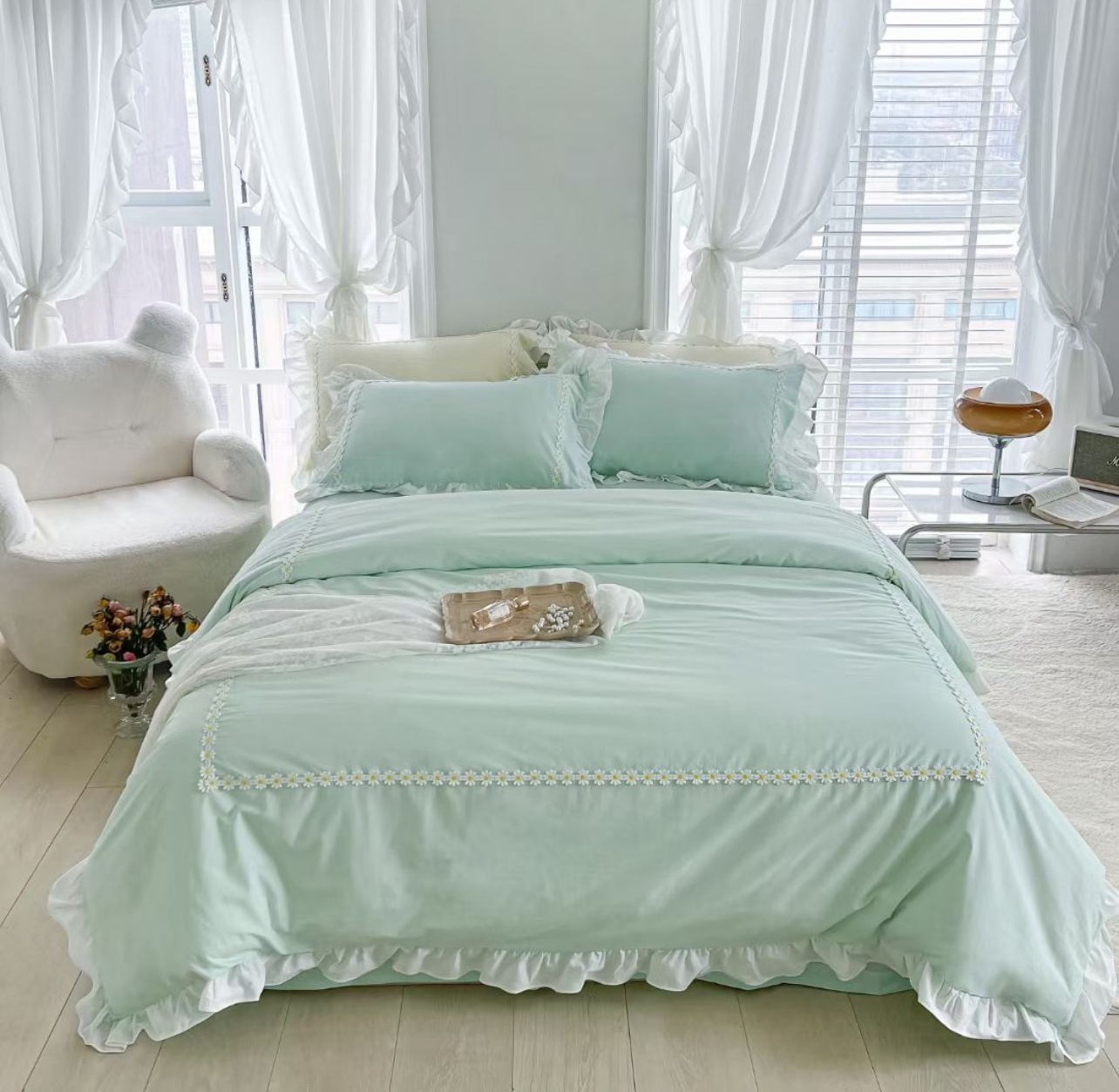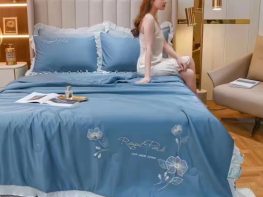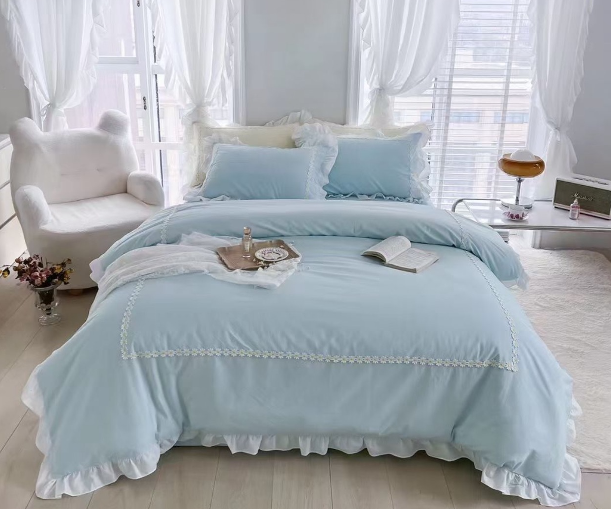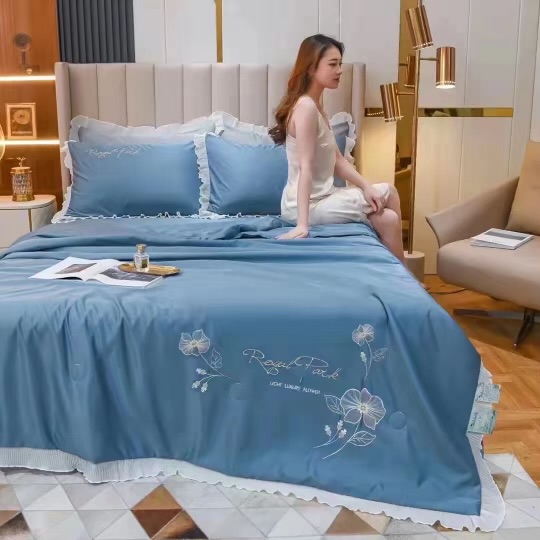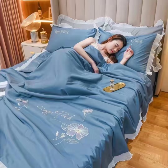 2022春夏新款—雪纺纱花边款绣花水洗真丝夏被四件套