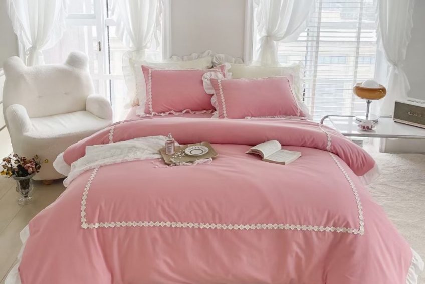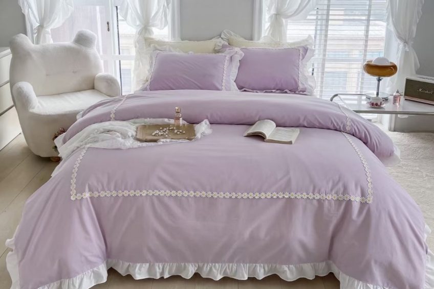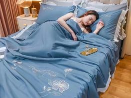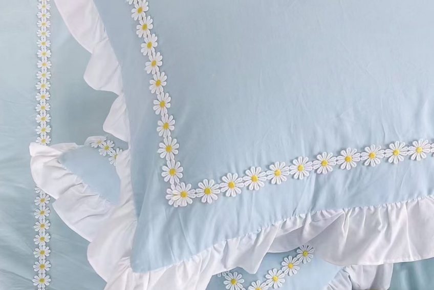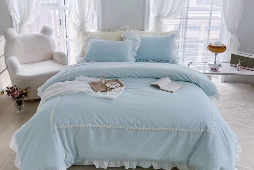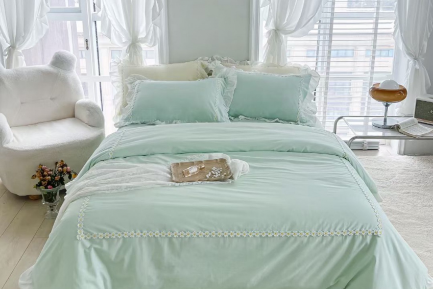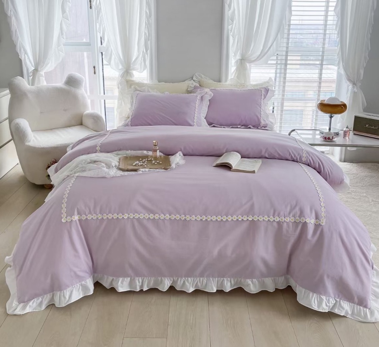 2022春夏新款—雪纺纱花边款绣花水洗真丝夏被四件套