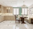 厨房台面的高度,往往是由家中女主人的身高决定的,通常在80~85cm之间;工作台面与吊柜底的距离大约50~60cm,才不至于经常磕碰;吊柜深度30~40cm,高度50~60cm。