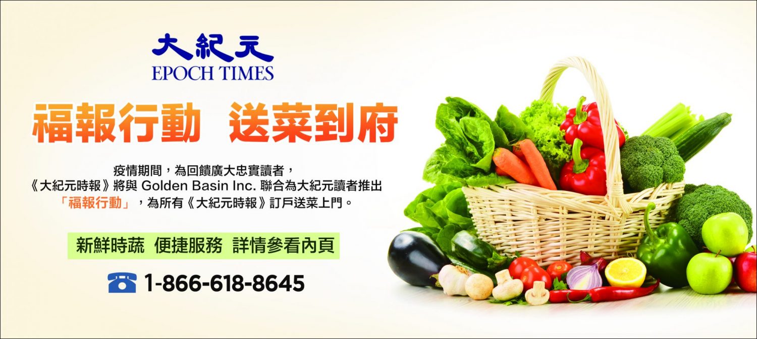 在此疫情期间,大纪元时报为回馈读者,服务华人社区居民,特推出为 订阅用户提供蔬菜配送服务。