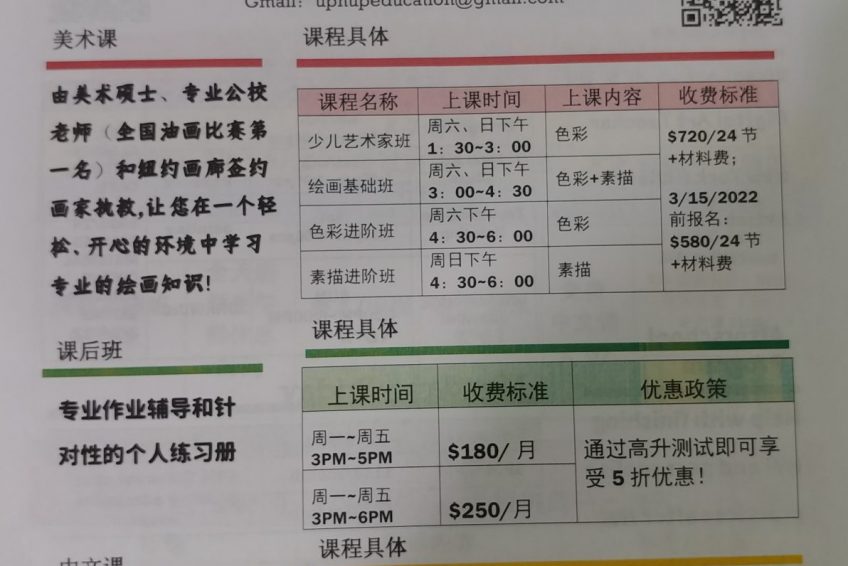 • 收费标准$650/24节课;如果在4/1/2022前报名,可享受优惠价$350/24节课。
