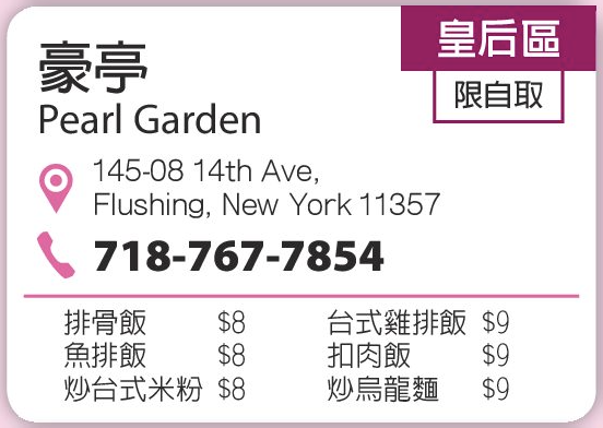 地址: 14508 14th Ave, Flushing, NY 11357 电话: (718) 767-7854