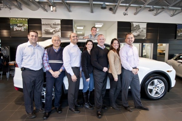 Porsche of Roslyn車行的銷售團隊,最上是銷售經理Eric S. Breitman。(孫華/大紀元)