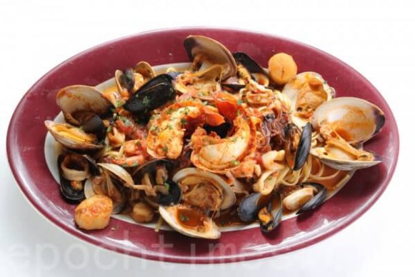 雙人海鮮大餐主菜:意大利海鮮面。