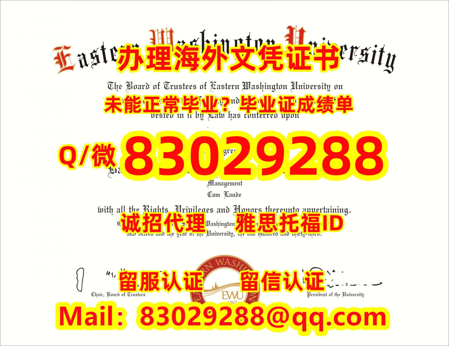 Q微2072299317-WES认证可做/≤EWU毕业证≥Q微83029288回国学历认证东华盛顿大学毕业 证认证成绩单学生卡 大学EWU毕业 证办理EWU本科毕业 证 办EWU留服留信认证 Eastern Washington University fake certificate 如果您处于一下几种情况: