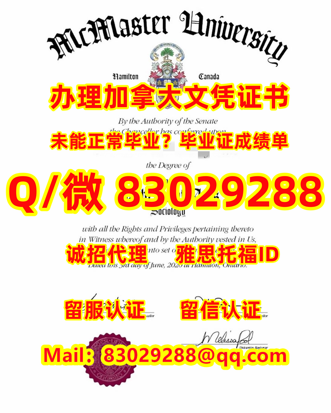 Q微948373000雅思托福≤McMaster毕业证≥Q/微83029288回国学历认证办加拿大麦克马斯特大学毕业 证书文凭成绩单学位证学位证原版FDF成绩单改GPA成绩雅思托福保分办McMaster学历毕业证成绩单留服留信认证  McMaster University fake Diploma如果您处于一下几种情况: