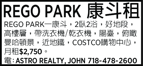 REGO PARK康鬥出租 718-478-2600
