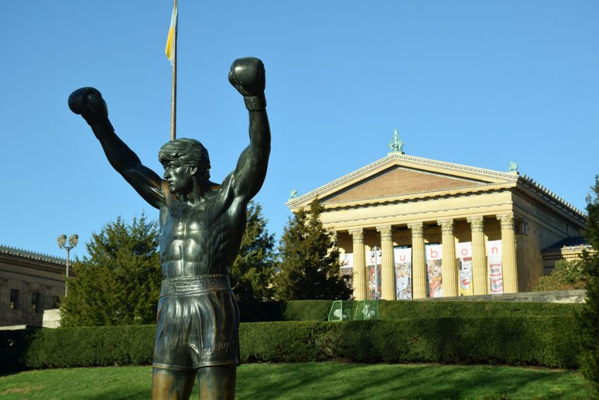 这是位于费城艺术博物馆的一尊雕像,雕像是一个奔跑的形象,很多游客来这里合影