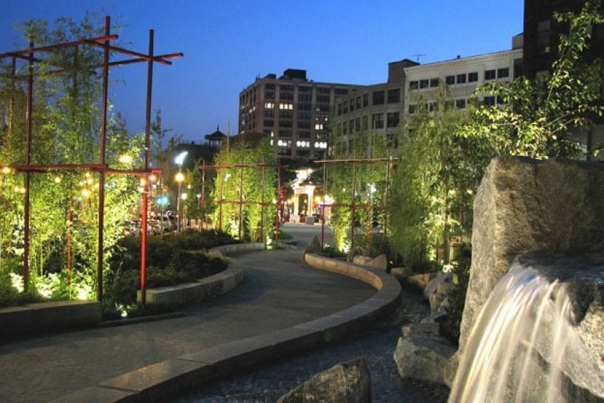 这是一个位于波士顿市中心跨越几个街区的线型城市公园,包括园景花园、广场、喷泉等休闲场所