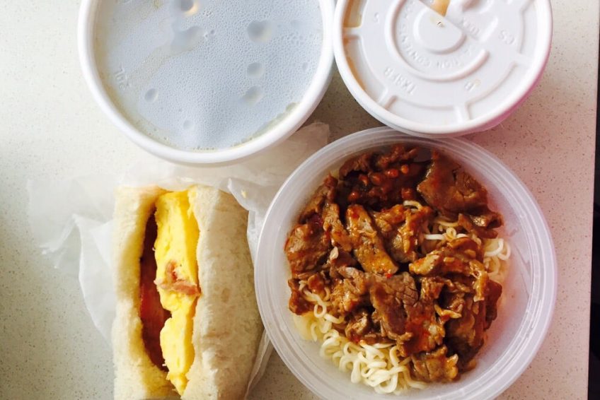 “Other notables include chicken with mushrooms or Chinese vegetables over fried noodles or rice, Spam or ham and egg sandwiches, coffee/milk tea.” in 10 reviews