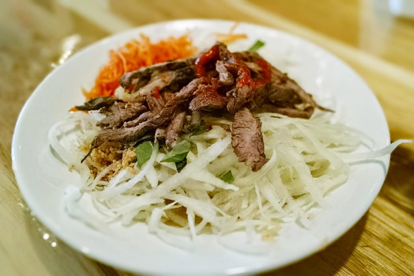 19. Goi Du Du * green papaya salad. shredded green papaya salad, grilled beef, basil and slightly spicy dressing with crushed peanuts  8.50