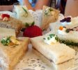 週末午後和好友曬著溫暖的陽光,享用下午茶和點心,格外愜意,位於巴沙迪那市的Scarlet Tea Room是巴沙迪那老城有名的英式下午茶小舖,多種類的茶加上溫馨優雅的用餐空間,吸引不少民眾到此消磨午後時光。 Scarlet Tea Room位於巴沙迪那老城Green St.上,大紅色招牌在綠樹掩映的街道上格外醒目,店裡的佈置讓人宛若身處傳統英國家庭,白色三角鋼琴丶晶瑩剔透的水晶吊燈丶精緻高雅的白色陶瓷餐具,在陽光下顯得很清爽,顧客中有很多貴婦打扮的老太太,穿著套裝,珠光寶氣,讓人感受到她們對生活的熱情。茶水選擇豐富,除了傳統伯爵和大吉嶺等紅茶外,飄著澹澹法國香草香的Colonille紅茶也很適合搭配牛奶享用,另外還有烏龍茶丶祁門紅茶丶茉莉綠茶丶花茶丶以及水蜜桃和熱帶水果口味的茶。餐點既漂亮又美味,小巧精緻的水果冰淇淋Sorbet有最新鮮天然的顏色和味道, 套餐三明治包括蔓越莓雞肉丶加入龍蒿做香料的雞蛋沙拉丶烤牛肉起司丶鮭魚丶小黃瓜丶青蘋果起司等口味,做工精細,食材新鮮,是搭配茶水的最佳拍檔。這裡的司康餅口味豐富,有香草丶薑汁丶蔓越莓等,搭配鮮奶油和果醬,再配上一口茶,清新滿溢,此外還有巧克力蛋糕丶檸檬蛋糕丶芝士蛋糕等甜點,最後來一份店家自製的草莓奶油Rom