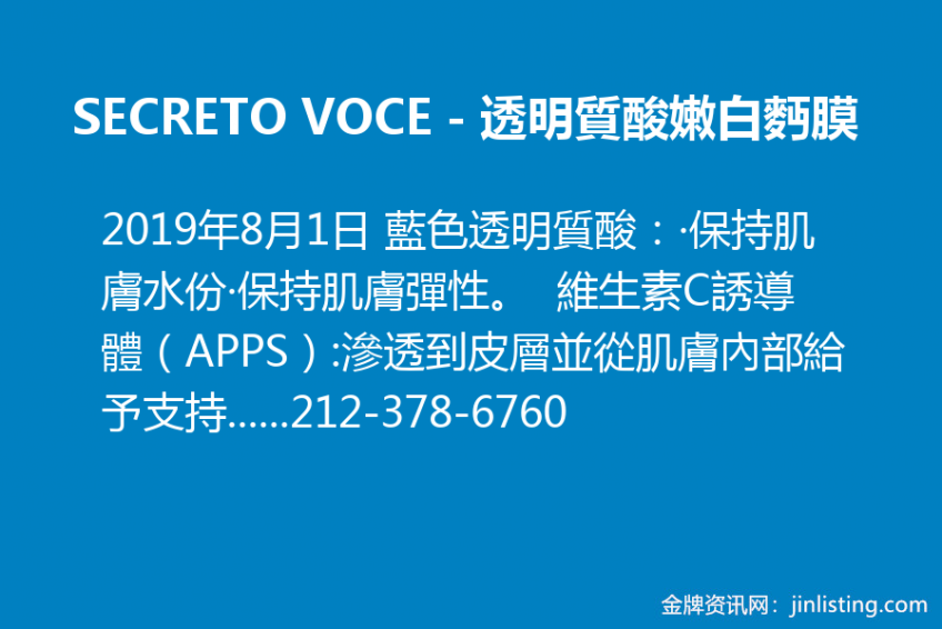 SECRETO VOCE-透明質酸嫩白麪膜 212-378-6760