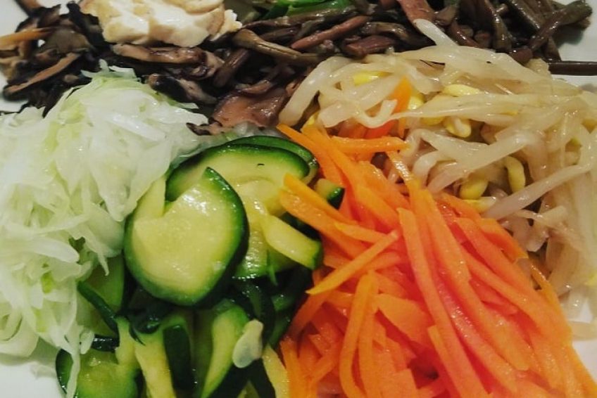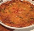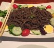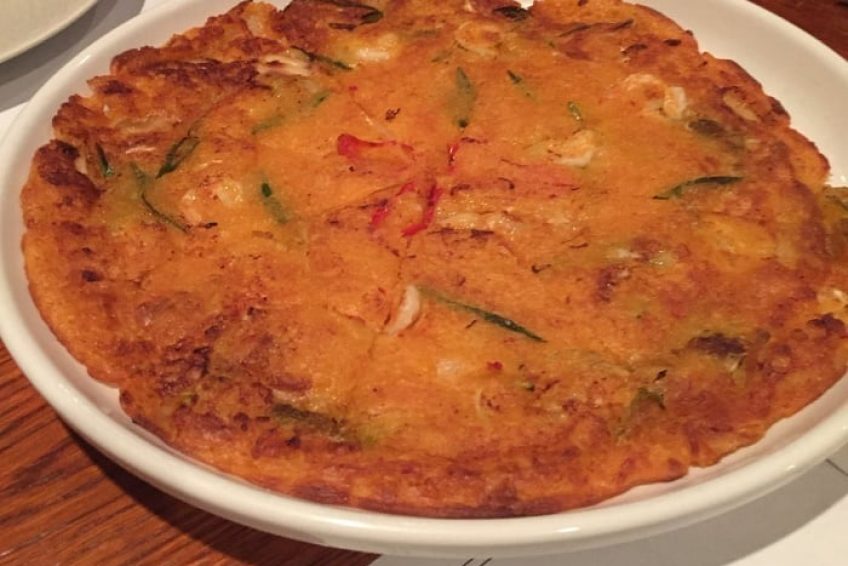 第二道开胃菜菜叫煎茄冷盘,薄薄的茄子片裹上蛋液,经过煎烤,将中间的洋葱和牛肉丝包裹在其中,然后淋上特制的酱汁,酸甜适中,卷起来吃,味道真是超级棒!一般我们都知道,茄子特别吃油,我们中餐有烧茄子这道名菜,吃起来是味道极佳,可惜比较油腻。但是Seoulville的煎茄冷盘,味道特好而不油腻,真是又好吃又健康。这其中的奥秘是那个特制的酱汁。当我们向主人问起这道菜的做法时,关于茄子做法李女士是细细道来,可是说到酱汁,她就笑而不宣了,说这是她的独家秘方,“天机”不可外泄。
