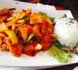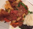 这道菜可是没端上来呢,远远就闻到了菜香,真是“十里飘香”呀!搞得我们的肚子都咕噜噜地叫起来了。夹起猪肉往嘴里一送,就两个字“好吃”!或者三个字“超好吃”!不由得感慨,就是那普通的食材,家家都能买到的猪肉呀、蔬菜呀,怎么这烹调手艺就这么不同呢?人家怎么就把个炒猪肉做得这么香呢!也没法形容了,就请读者自己去尝一尝吧,就叫做“百闻不如一尝”吧!