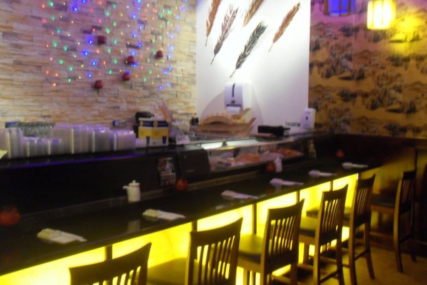 7 piece sushi, 9 piece sashimi, and tuna or salmon roll.