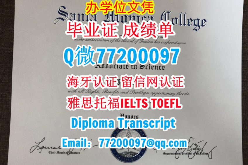 SMC文凭证书办理圣莫尼卡学院文凭成绩单Q/微:77200097有SMC学位证书精仿SMC毕业证书能办SMC成绩单制作圣莫尼卡学院文凭证书雅思托福Santa Monica College Bachelor/Master Diploma Degree Transcript