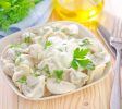 Tempeh Croquette deep fried croquettes served with tofu dill sauce, steamed vegetables and yam salad and a side of steamed vegetables.  16.00
