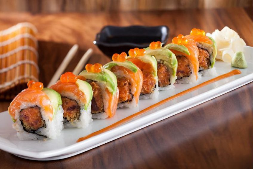 A-Brion Roll salmon on top of spicy tuna wtth spicy mayo lunch special 7.99 dinner 9.99