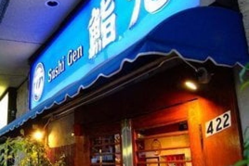 Sushi Gen日本料理餐廳 位於Little Tokyo中心, 在LA算是老字號了. 這家餐廳的招牌 菜就是周間推出的生魚片特價套餐, 一份用上等新鮮魚肉做出來的生魚片套餐才$15而 已. 許多客人慕名而來, 導致每天11:15分開門前, 門口就大排長龍 由於餐廳本身不大 , 如果不早點來排隊, 就無法排進第一輪, 而要等一個鐘頭。