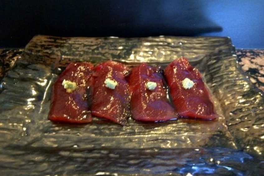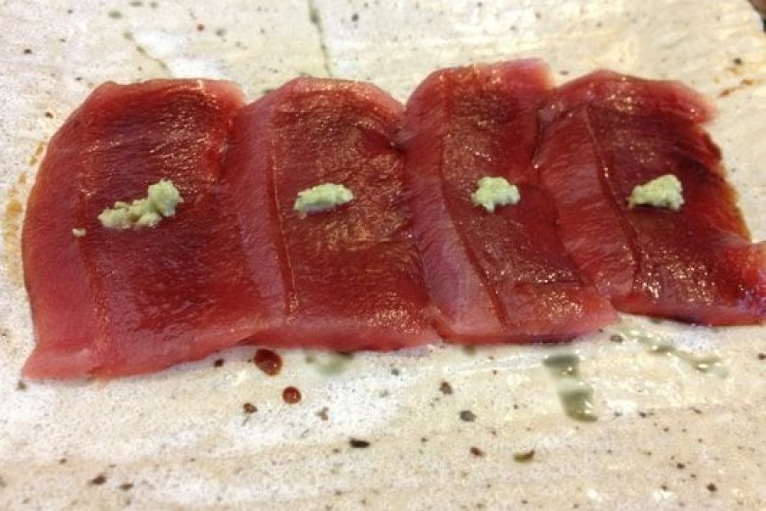 主廚當天安排菜單,食材全部從日本空運,廚師會告訴你吃法,不按照吃法直接吃不怎麼受歡迎