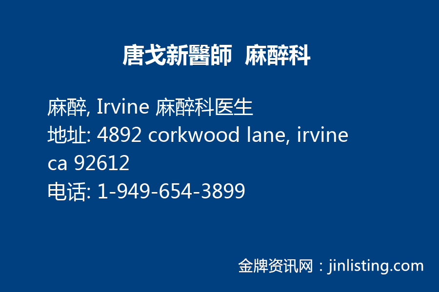 地址:4892 corkwood lane,irvine ca 92612 電話:1-949-654-3899 麻醉,Irvine麻醉科醫生