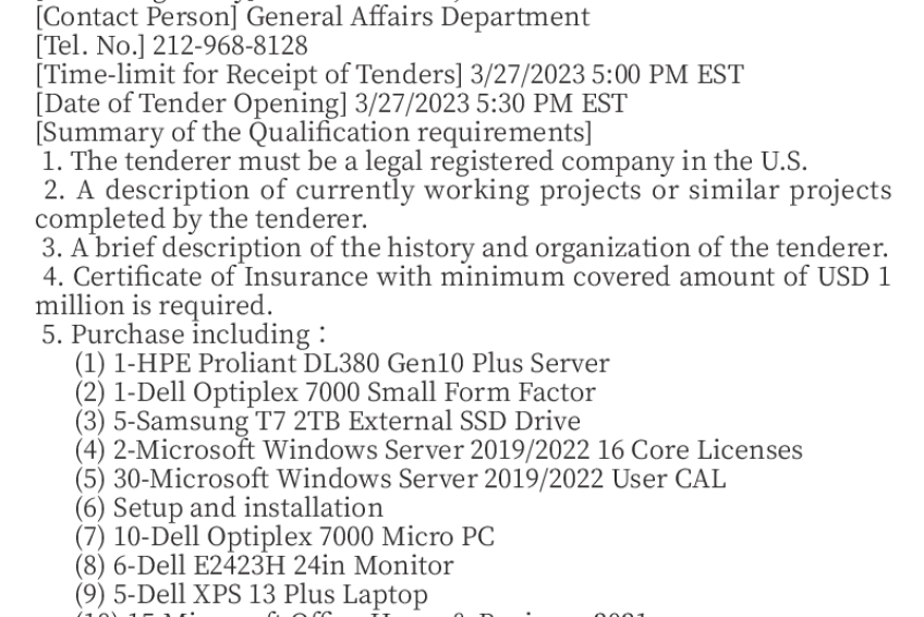 [Time-limit for Receipt of Tenders] 3/27/2023 5:00 PM EST