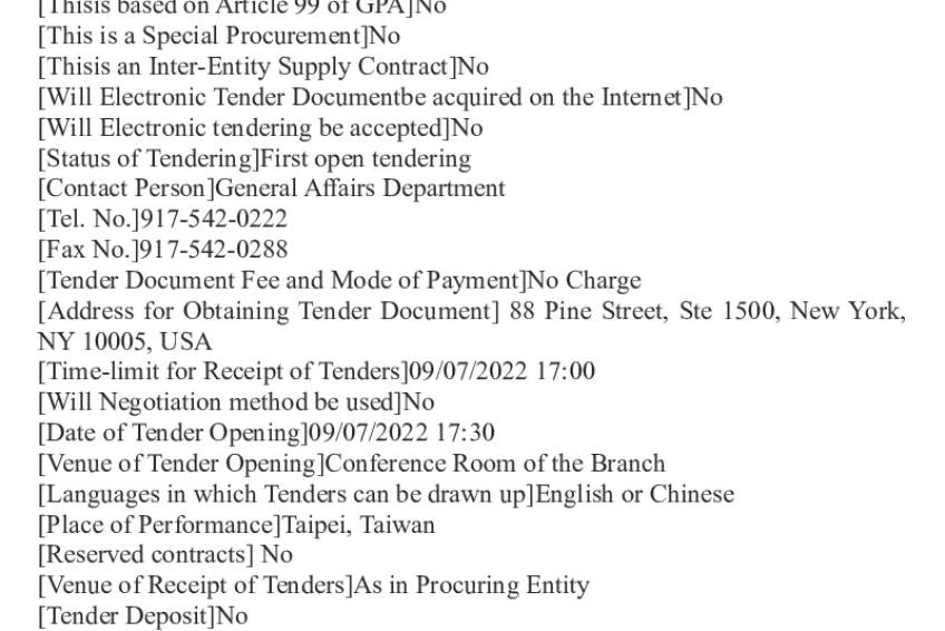 [Procuring Entity] Land Bank of Taiwan, New York Branch
