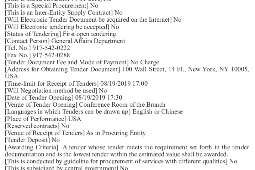 [Procuring Entity] Land Bank of Taiwan, New York Branch