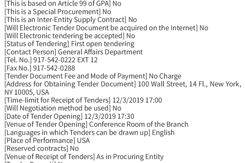 [Tender Reference No.] LBOTNY-2019-11-07-1