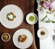 至于赏味菜单的其它部分,兰波特也将西方餐饮的元素加入创意。像用给蛋糕加糖霜一样,将味道浓厚滑润的猪肉酱挤成奶油花状,再点上越橘莓酱,添加酸味。南瓜挞加上一撮黑芝麻粉,可以增添坚果香味。