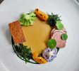 在一道清蒸扇贝的菜中,兰波特将扇贝的天然甜味与亚洲风味结合,扇贝上淋有姜,香橙和梅醋制成的酱,还洒有一片片柚子肉,红肉脐橙,血橙和葡萄柚,味道层次丰富,刺激味蕾。