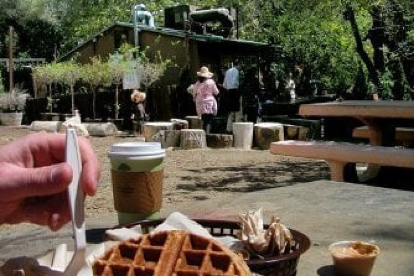營業時間:每週二到日上午8點到下午5點葛林菲斯公園(Griffith Park)有知名的天文台與登山步道,許多民眾來這享受戶外陽光同時,絕不會錯過前往被綠蔭環繞,隱藏在登山步道中途的The Trails木屋餐廳,在這用餐除了可品嚐老闆特製烤肉派與鬆餅,戶外座位可呼吸到新鮮的森林芬多精,每到週末吸引許多民眾前往。 The Trails木屋餐廳如其名,地點不在喧鬧的大馬路旁,而是隱藏在知名的葛林菲斯公園登山步道中,被高聳樹林環繞的餐廳,外型看起來是一棟可愛的小木屋,屋簷掛滿了彩色燈泡,前方的橡木桶擺了老闆新鮮採買的蔬菜水果,餐廳沒有室內座位,只有一排窗口讓民眾點餐,方形黑板上寫了當日菜單,排隊不時聞到飄出的烤麵包香味。菜單選擇不多,最受歡迎的是老闆特製烤派,烤肉派內夾滿了牛肉丶馬鈴薯丶洋蔥丶青豆丶甜玉米丶胡蘿蔔,及鮮豔的黃橙椒,沾著烤肉醬或奶油醬特別美味,絡梨三明治則是健康養生人士最佳選擇,其他如水果沙拉丶熱狗埢丶蕃茄起司派丶波菜起司派與烤蛋比思吉,均是餐廳招牌美食。若民眾一大早來登山,沒時間吃早餐,也可到這享用現烤草莓奶油鬆餅與核桃馬芬,再來杯有機草本茶或咖啡。在這用餐就像在戶外野餐,餐廳座位是一張張大木桌與長椅,坐在這吃東西,可邊享受夏日森林微風,呼吸新鮮空氣,也可聽見陣陣鳥鳴,輕鬆自在,一旁的小舞台不時還有說故事活動,適合全家人前往。吃飽喝足後可繼續上路,爬上葛林菲斯公園頂端,座落於好萊塢山的公園,一旁可看見全球知名的好萊塢標誌,前方觀景台則是洛杉磯最佳的眺望點, 從洛杉磯市區摩天大樓丶好萊塢Arclight電影院丶星光大道,甚至西塢世紀城(Century City)大樓,壯觀景印入眼簾,度過休閒健康的一天。
