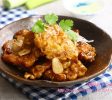 A17. Crispy Chicken With Garlic Sauce* with beef or shrimp fried rice  5.50