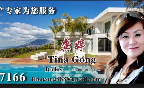 Tina 龚来自于中国山东,在美居住30年,受过良好的高等教育,曾经多次荣获房地产行业最佳优秀年度奬,她的足迹踏遍了大洛叽地区,帮助过无数个投资者和新移民朋友来美安家置业。她秉着诚信做事, 热忱服务, 耐心解答, 真心的为客户着想, 获得了客户一致的好评和口碑。 血浓于水,多年来Tina 龚的客户85%是来自于中国,她了解中国,随著国内朋友不断来洛杉矶购置房地产,Tina龚更是提供了一站式服务。从机场接送,联系子女上学,到银行开户和考驾照。以及售后房屋出租管理,翻译,收信件无微不致。 Tina龚主要经营范围包括:洛杉矶圣马力诺丶阿凯迪亚丶帕萨迪那丶比华利山庄,尔湾及新港湾地区的高档社区和商业投资丶酒店丶学校丶农场丶酒庄 等。 Tina 龚愿以高效丶快捷丶全方位~缘您的美国梦