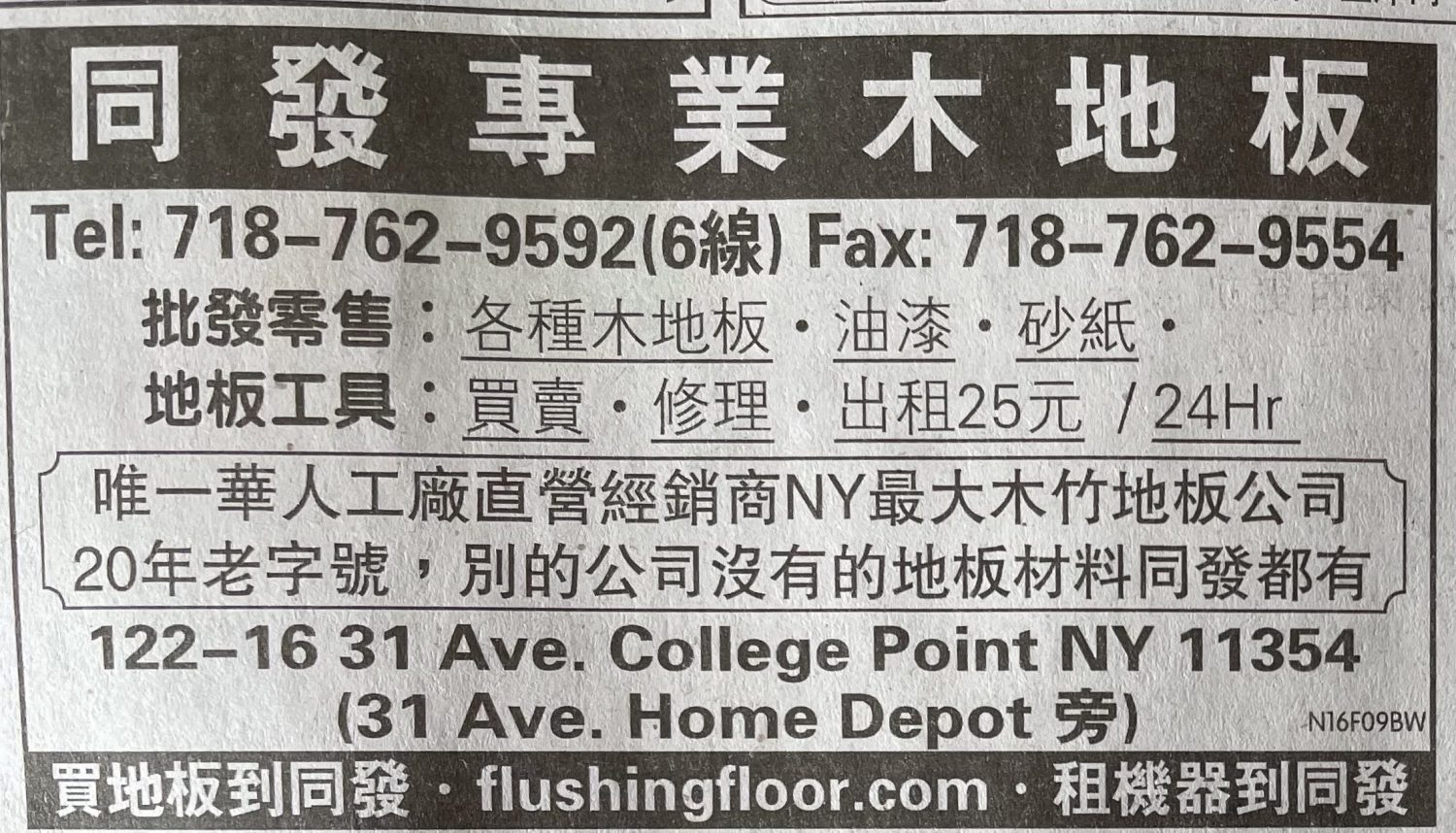 Add: 122-16 31 Ave. College Point NY 11354 (31 Ave. Home Depot 旁)