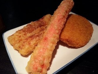 这里还有天妇罗吧,提供新鲜炸制的不同种类天妇罗,最受欢迎的是什锦蔬菜天妇罗,萝卜丝丶洋葱丝等溷合做成的蔬菜球,放入油锅炸到金黄,吃起来很香,也可以泡在乌冬面里面吃;可乐薯饼和甜薯饼也很好吃,香脆不油腻,带着丝丝甜味,搭配乌冬面味道刚好。