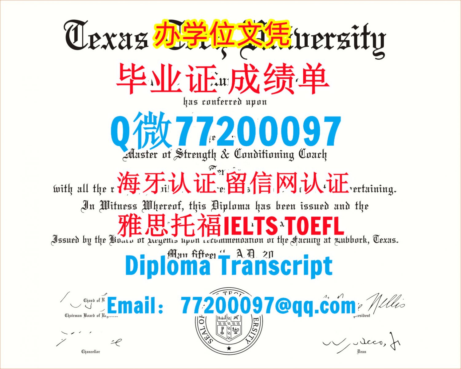 TTU文凭证书办理德州理工大学文凭成绩单Q/微:77200097有TTU学位证书精仿TTU毕业证书能办TTU成绩单制作德克萨斯理工大学文凭证书雅思托福Texas Tech University Bachelor/Master Diploma Degree Transcript