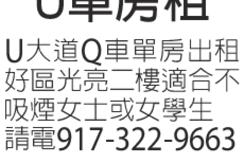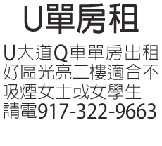 U單房租    917-322-9663