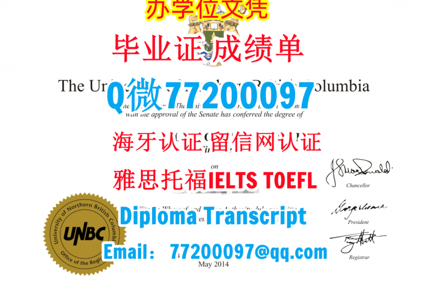 UNBC文凭证书办理北英属哥伦比亚大学文凭成绩单Q/微:77200097有UNBC学位证书精仿UNBC毕业证书能办UNBC成绩单制作北英属哥伦比亚大学文凭证书offer雅思托福University of Northern British Columbia Diploma Degree Transcript