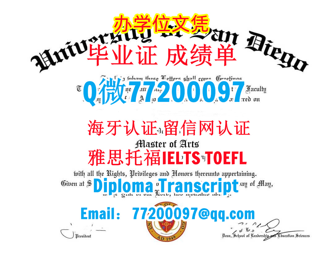 USD文凭证书办理圣地亚哥大学文凭成绩单Q/微:77200097有USD学位证书精仿USD毕业证书能办USD成绩单制作圣地亚哥大学文凭证书雅思托福University of San Diego Bachelor/Master Diploma Degree Transcript