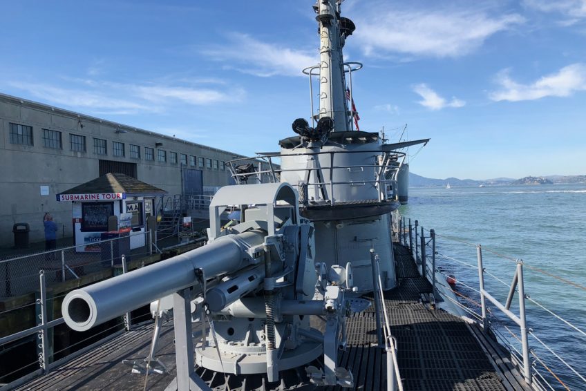 二战时期美国海军USS Pampanito号潜艇,建造于1943年,参加过二战的太平洋战场对日作战,击沉6艘,击伤4艘日舰。现在停靠在旧金山渔人码头,并且对游人开放。如果是军事迷,可以去看看。提供在潜艇上过夜(Sleepover)的体验,早上还有升旗仪式。