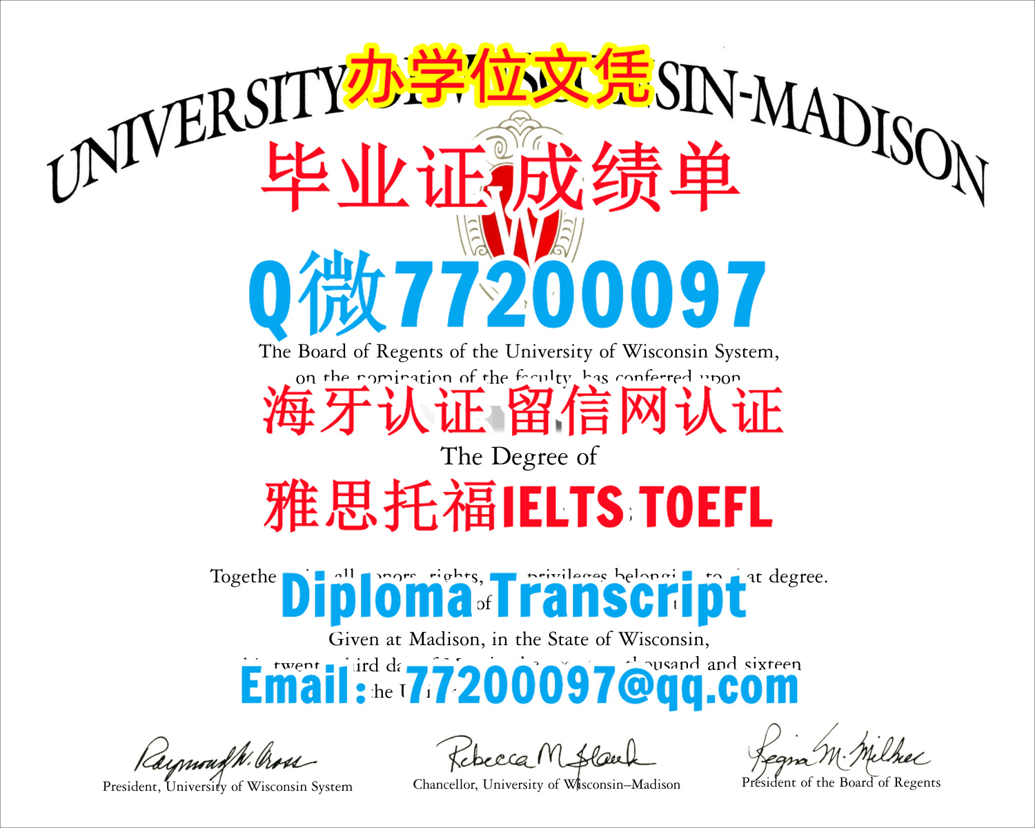 UW-Madison文凭证书办理威斯康星大学麦迪逊分校文凭成绩单Q/微:77200097有UW学位证书精仿UW-Madison毕业证书能办威大成绩单制作威斯康星大学文凭证书雅思托福University of Wisconsin-Madison Bachelor/Master Diploma Degree Transcript